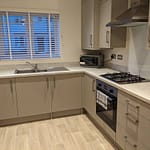 A fully equipped kitchen with a cooker, hob, microwave, kettle, washing machine, fridge, freezer, and dishwasher for your convenience.